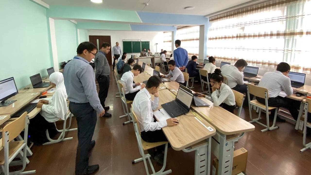 2022年4月、東京から6,000km離れた中央アジア ウズベキスタン共和国の首都タシュケントの学校で3,600名の中2~高1生が数学のCBTテスト*に取り組む姿がありました(写真はテスト実施の模様)。このテスト、実は河合塾グループのハピラル・テストソリューションズ(以下、ハピラル)が作成したテストです。
