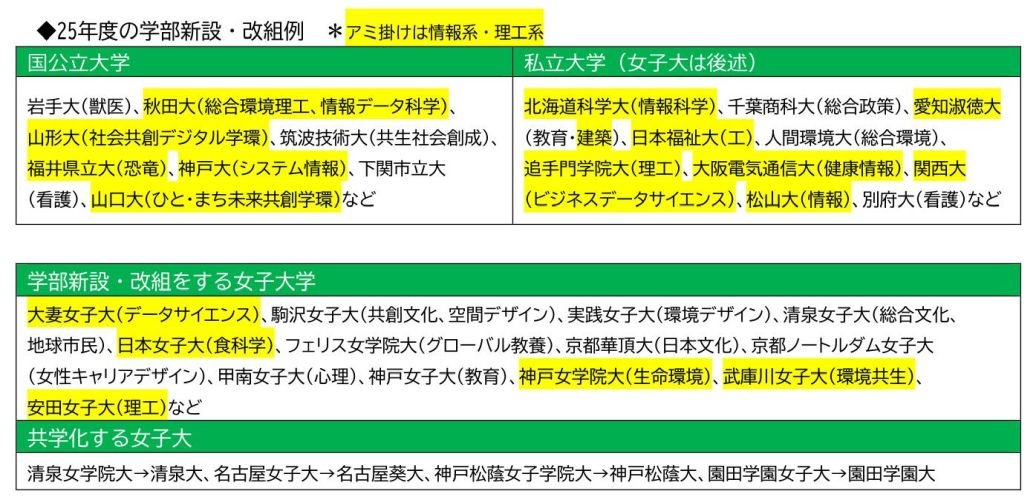 (1)情報系・理工系を中心に新たな学部が誕生
