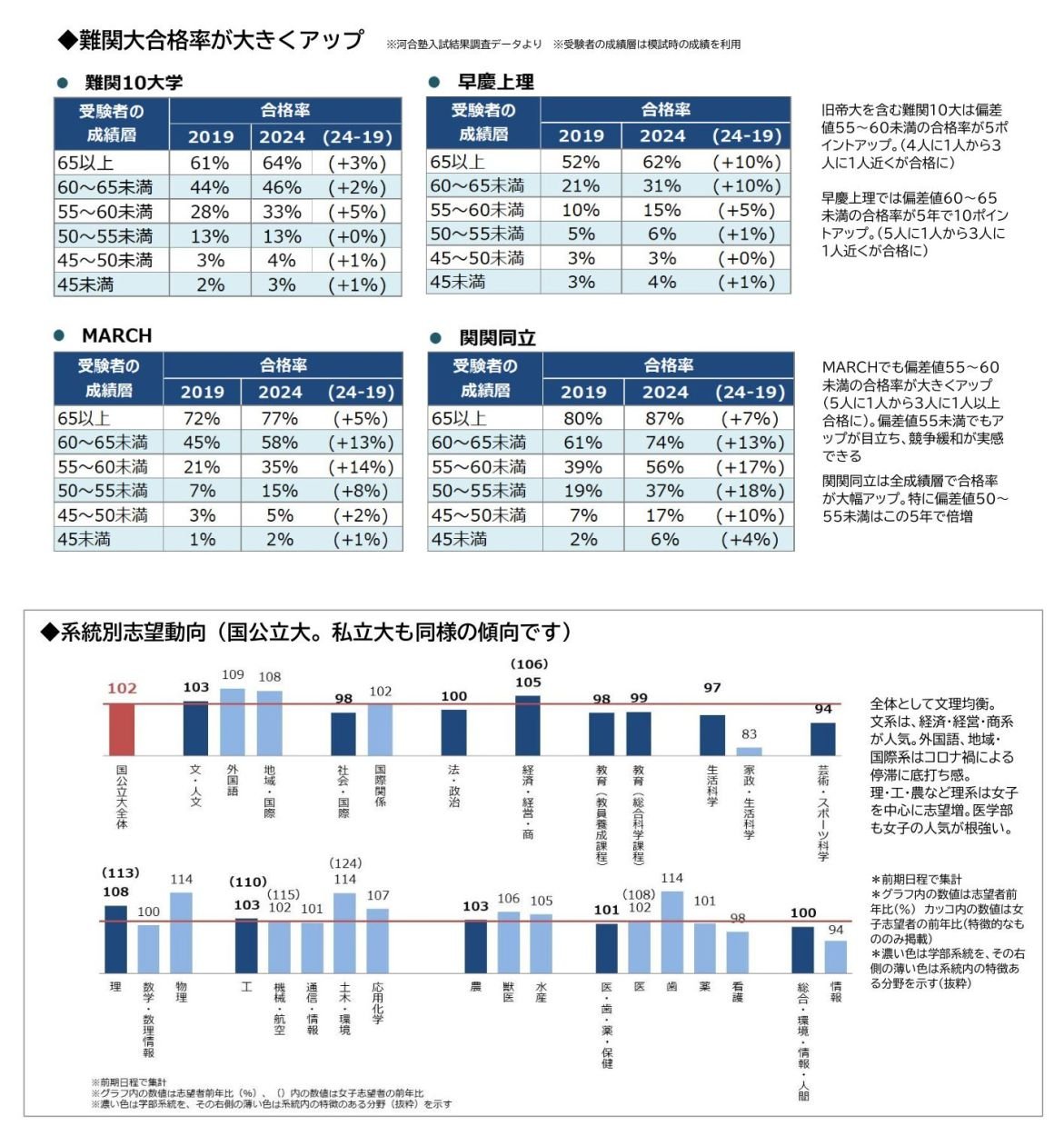 [図2:難関大合格率の推移/図3:系統別志望動向 大きな図はこちら]