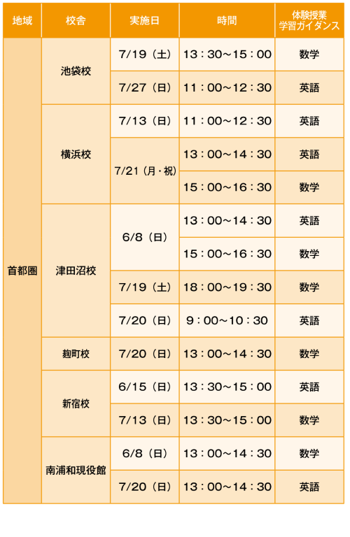 ※お子様のみ、保護者の方のみの参加も可能です。一部、内容が異なる校舎もあります。