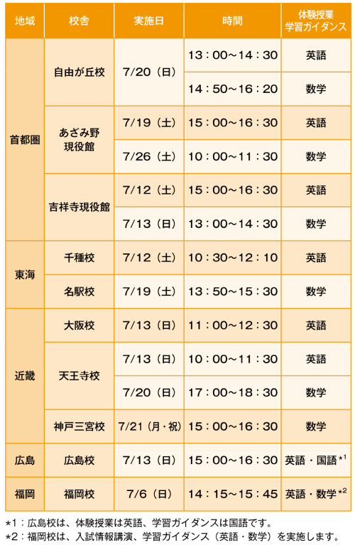 学習ガイダンスのコーナーでは、この夏にやっておくべき学習のポイントなど、より具体的な学習アドバイスをお伝えいたします。ぜひ、親子で大学入試を考えるきっかけとしてご参加ください。