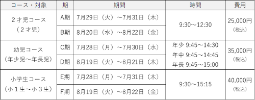 ※幼児コース:6月26日(木)10:00~申込開始