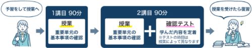 各学年の重要テーマを題材に、基本事項の理解・定着を図りつつ、入試レベルの問題の解き方も学べる講座。講師による講義を中心に進め、2講目の授業の最後に確認テストを行い、本講座での学習習得度をチェックします。