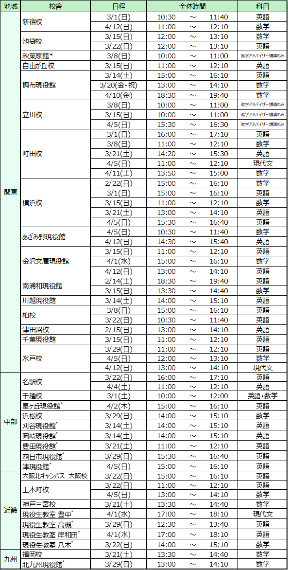 | 講演者 | 河合塾講師・進学アドバイザー ※教科は校舎・日程により異なります |