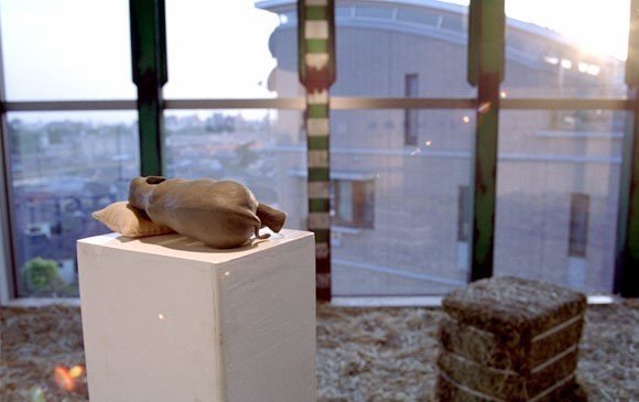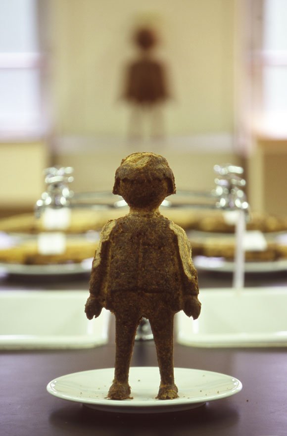 高校を卒業して2年後、東京芸術大学美術学部絵画科油絵に合格しました。大学でしかできないような活動をしたいと思い、広いアトリエや大きな機材が揃っている環境を生かして、ビッグスケールの作品に取り組みました。版画、写真、CGなど、油絵以外のジャンルにも挑戦しました。その中で、次第に現代美術に興味が移り、大学院の修了制作では、サラミでつくった人形を展示するインスタレーションを仕上げました。この作品はその後、廃校になった中学校で展示し、来場した子どもたちに実際に食べてもらいました。