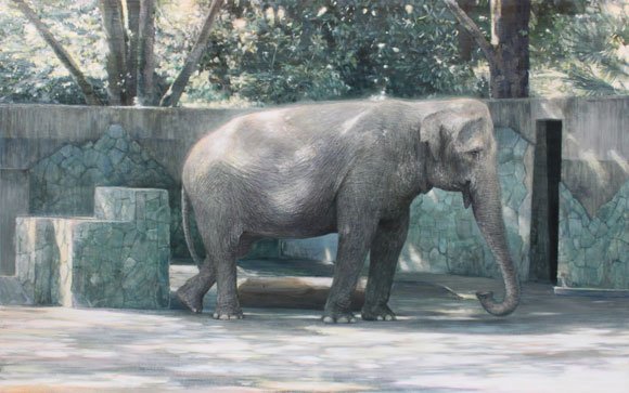 大学2年次から美術研究所で講師を務め、約10年間続けました。その傍らでさまざまなインスタレーションに取り組んでいます。とくにライフワークになっているのが「ゾウのはな子」です。井の頭自然文化園で飼育されていたゾウで、幼稚園の遠足で出会って以来、高校時代もよくデッサンに訪れ、愛着を感じていました。2016年5月に69歳で亡くなったのですが、生きているうちに何らかの形に残しておきたいという気持ちが強まり、絵画、彫刻など、さまざまな作品をつくりました。その1つが、吉祥寺駅前に設置されている銅像です。ちなみにこの銅像の名板は、美術研究所の同級生が制作してくれました。当時の仲間は、厳しい修行時代を共に過ごした「戦友」のような感じで、私にとって貴重な存在です。